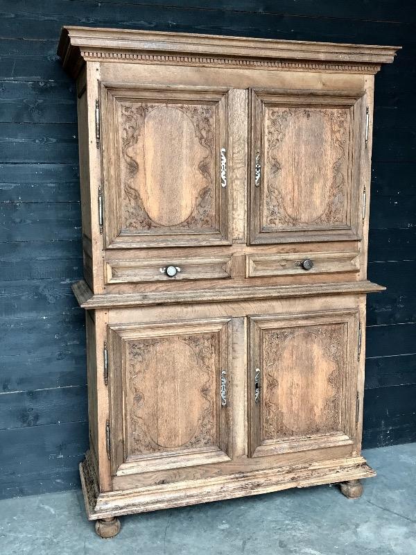 A wonderful Large French Oak Cabinet or Cupboard, 18th Century in date and made from solid Oak, having 4 doors and 2 drawers providing plenty of storage. Would make an ideal larder Cupboard in a farmhouse style kitchen.
