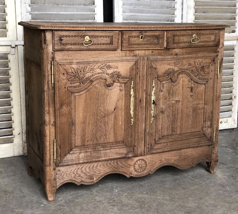 An early French Buffet, Dresser or Sideboard, made from Oak and has been bleached. Highly decorative and very useful providing plenty of storage.