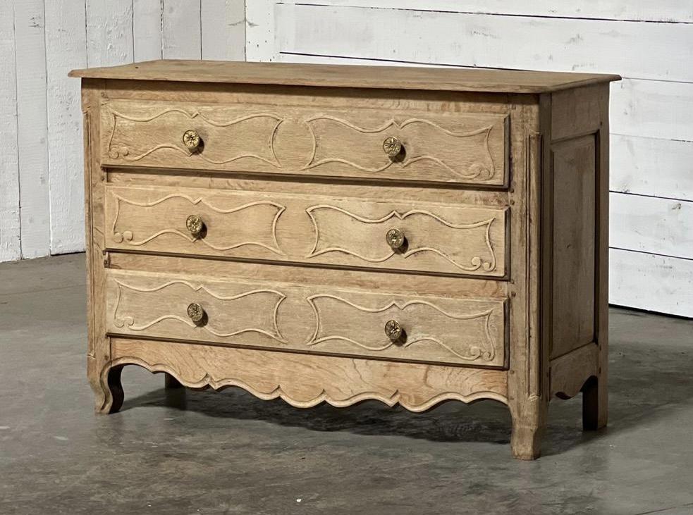 A fine French commode chest of drawers made from solid oak which we have bleached for a lighter look and dating to the early 19th Century. The 3 drawers all run smoothly and provide plenty of storage. Not too large as these French chests often are and in excellent original condition for the home.