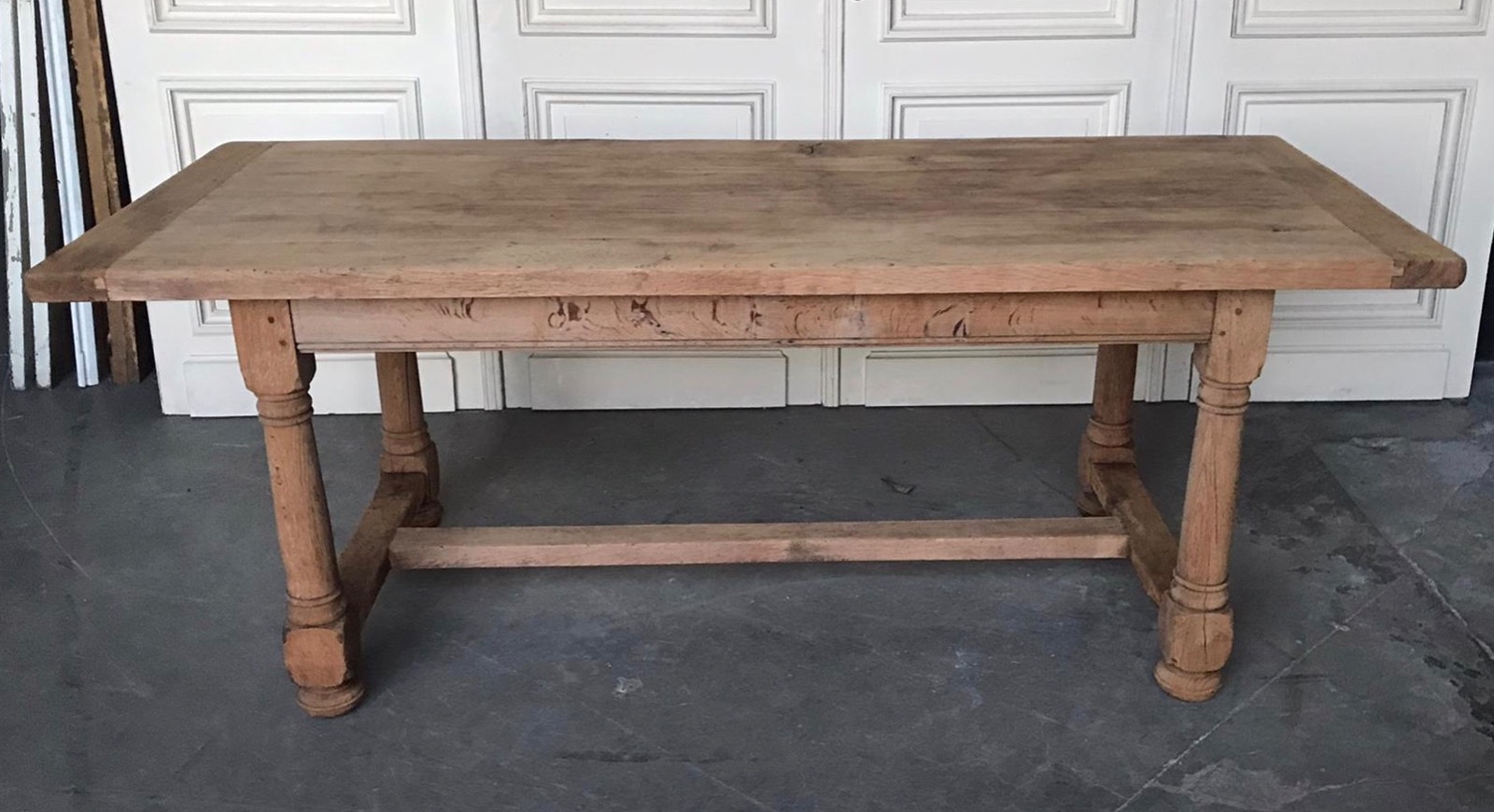 A lovely Farmhouse Kitchen Dining Table made from Solid Oak and pegged joints. We have bleached this for a fresh look but it can be waxed to any colour or shade desired.