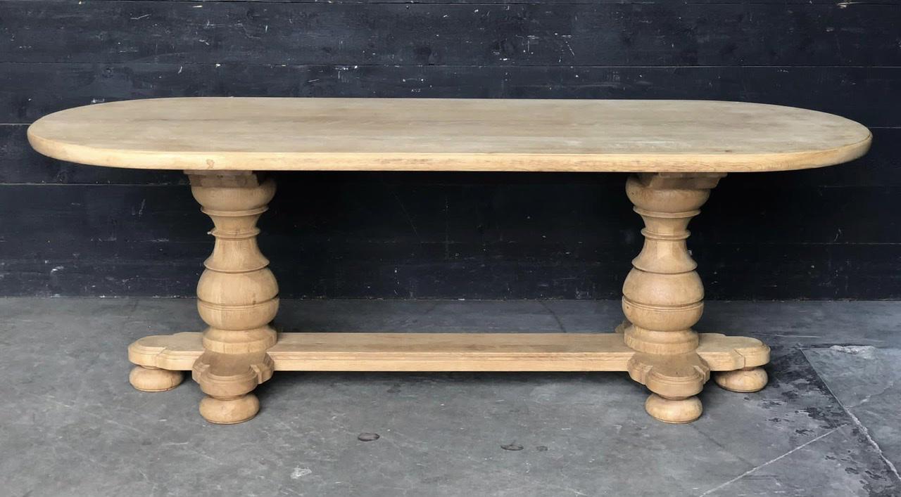 A lovely Monastery or Farmhouse French Refectory Dining Table. Made in the 1900’s of solid Oak which we have bleached for a fresh look. This is a very well constructed table that will last for generations to come.