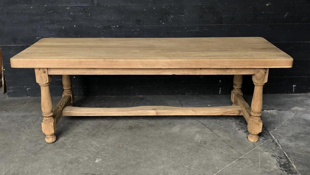 A wide French Oak Farmhouse Refectory Dining Table. Made in the 1900’s and solid Oak very heavy ! We have bleached it for a lighter look but could be coloured and waxed if desired.