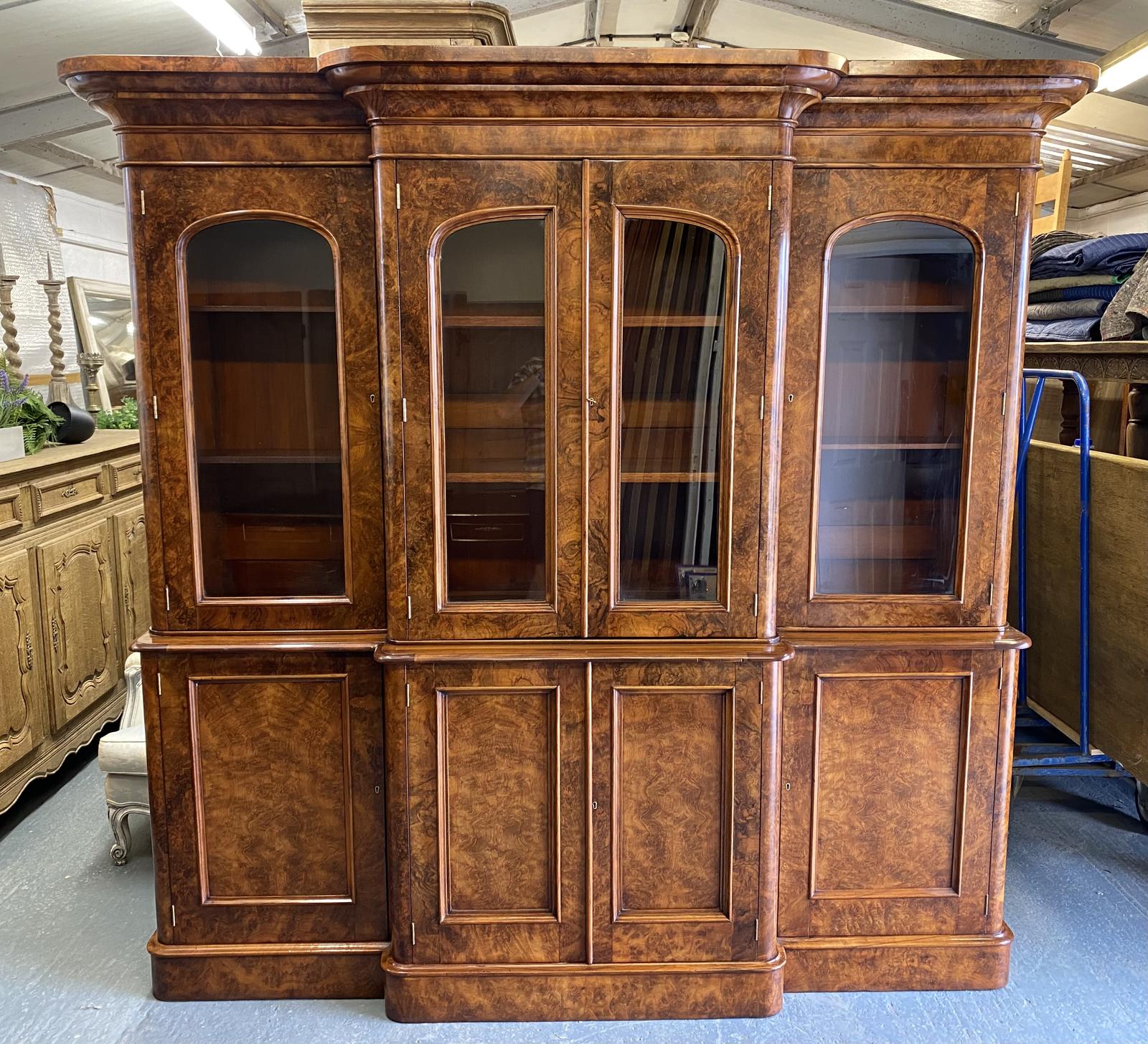 Burr Walnut 4 Door Breakfront Library Bookcase
