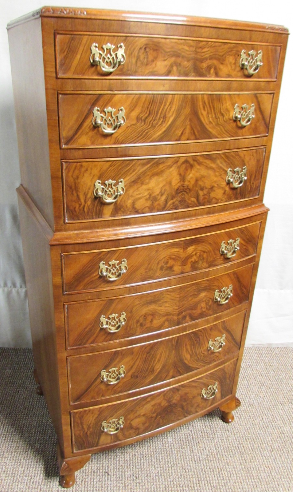 Burr Walnut Bow Front Chest of Drawers