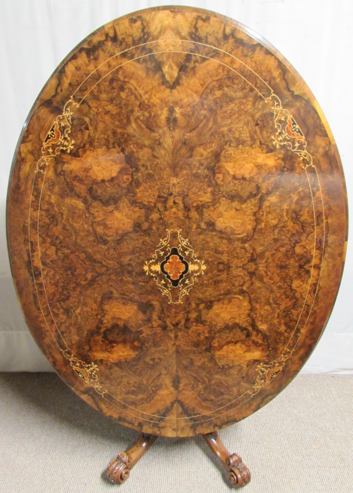 Burr Walnut Inlaid Loo Dining Table c.1865