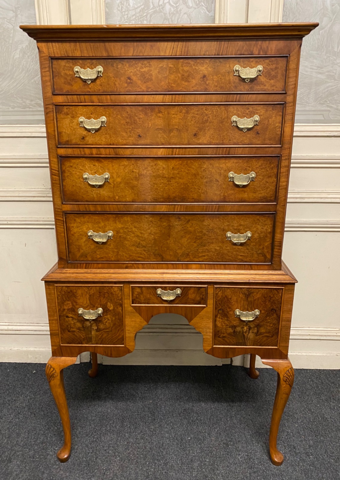 Burr Walnut Queen Anne Chest On Stand C.1920