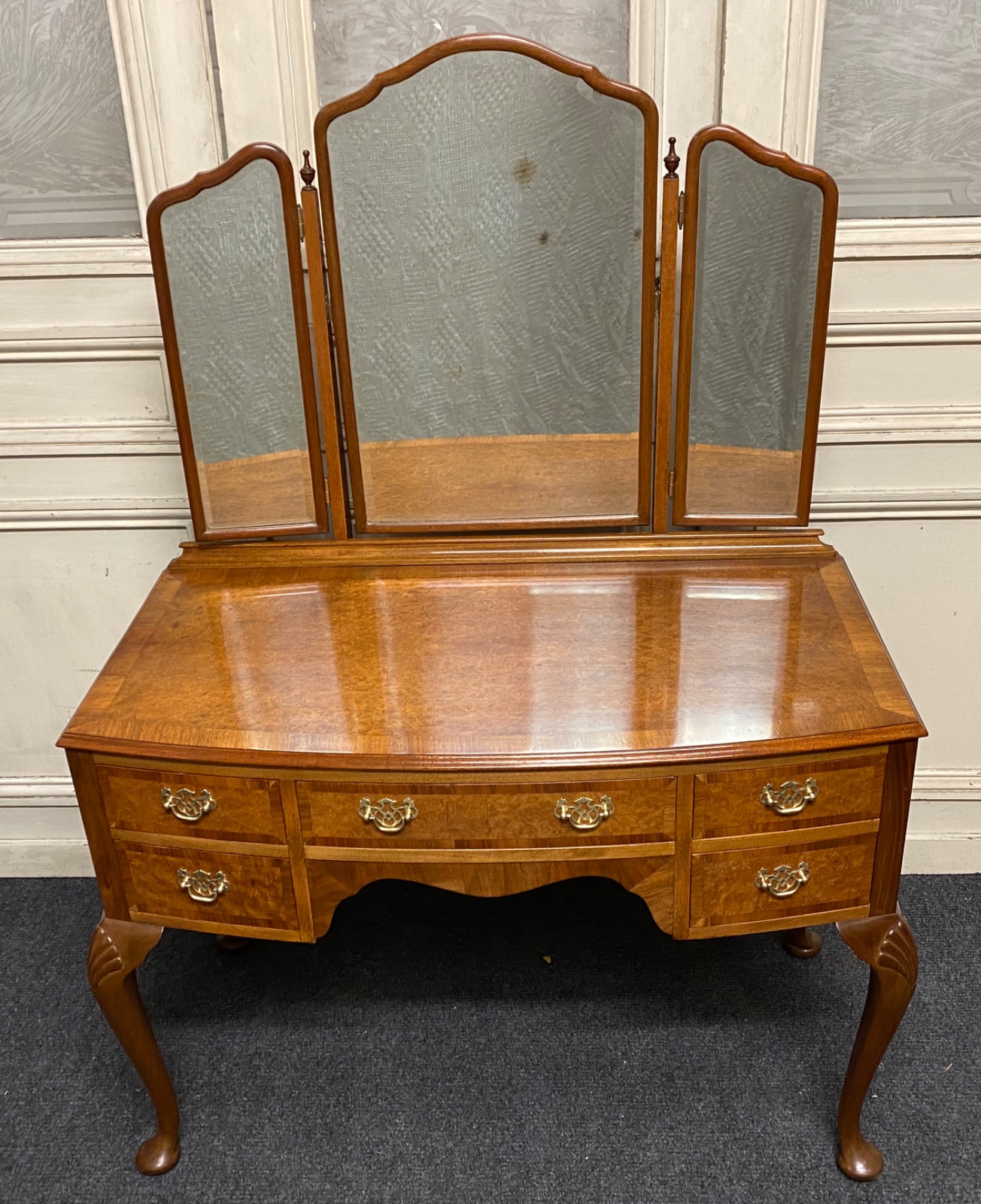 A pretty dressing table, Queen Anne style and made from Walnut with excellent Burr Walnut.