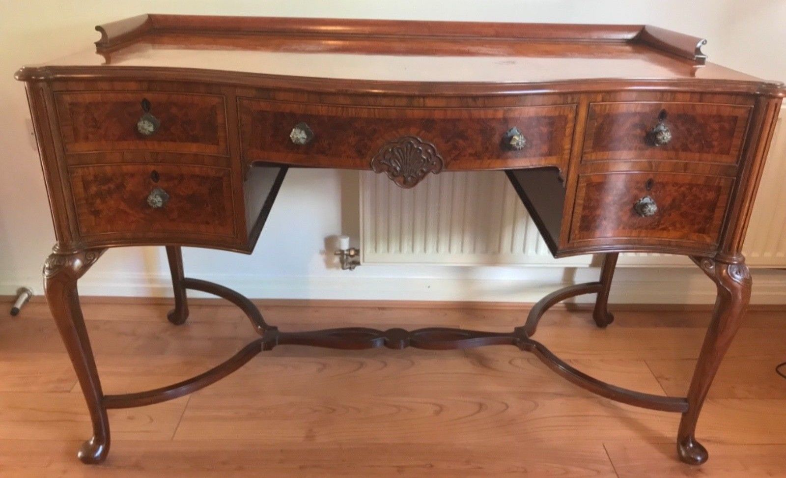 Burr Walnut Queen Anne Serpentine Desk c.1920