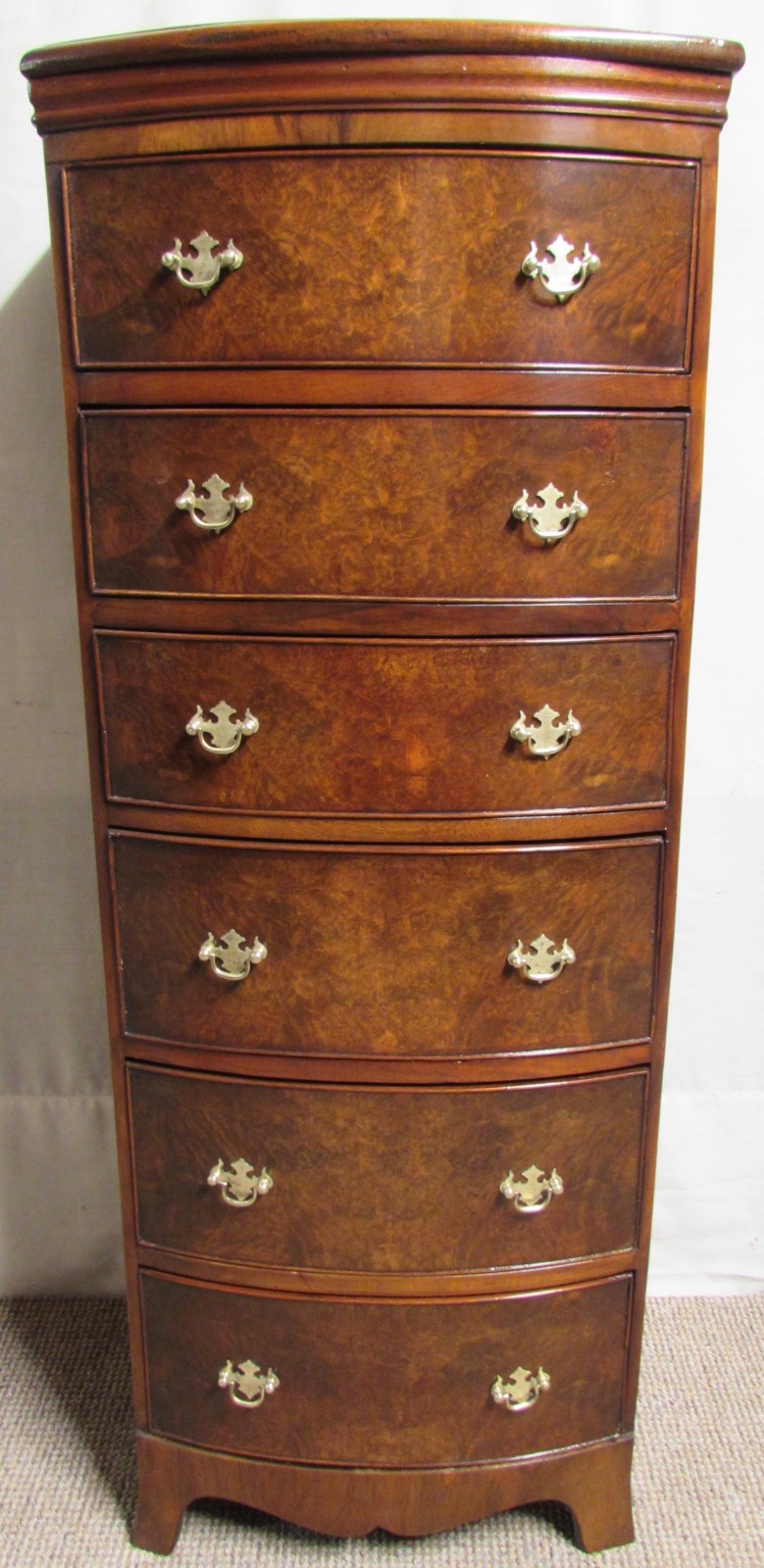 Burr Walnut Tall Slim Chest of Drawers c.1920