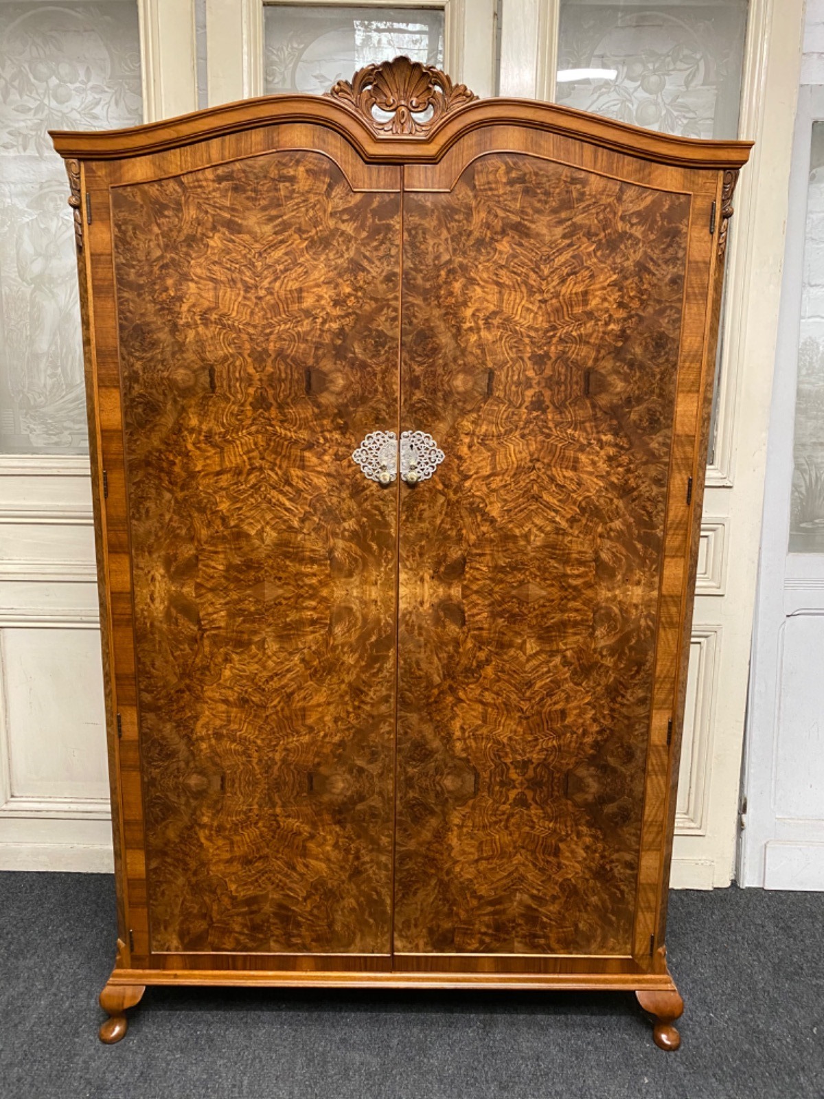 A simply stunning 2 door Wardrobe, having the best burr walnut front I have seen in a long time. Nice original lock plate and she sits on Queen Anne legs. Having been re finished to a very high standard in excellent condition for the home.