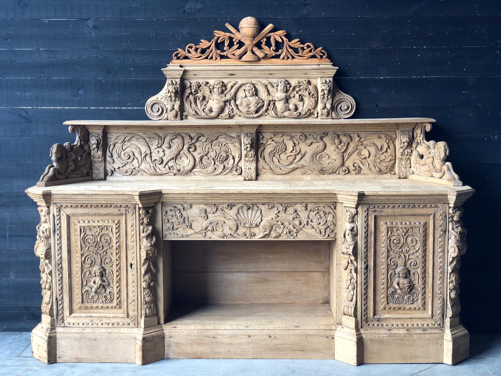 Carved Bleached Oak Sideboard c.1850
