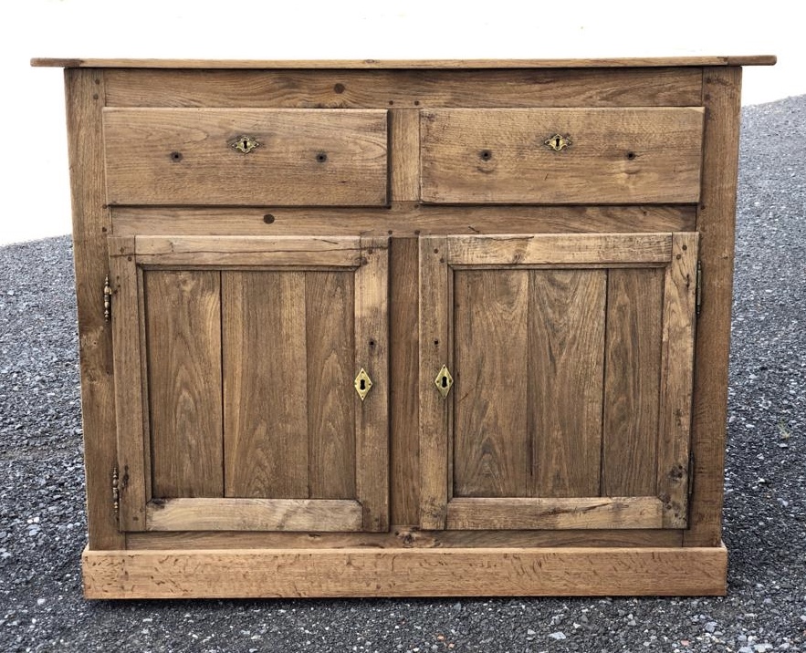 A very useful French 2 door Farmhouse Cupboard or Dresser Base, nice early 19th piece. Highly practical providing good storage. We have bleached this piece for a fresh look but could be waxed or oiled to any colour desired.