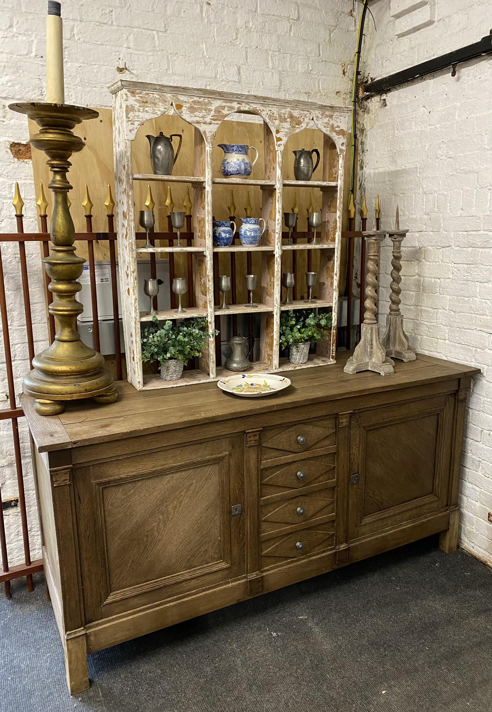 A good Oak French Directoire Style Enfilade, Sideboard or Dresser Base, dating to the early 19th Century. Have 4 central doors and 2 lockable (key present) doors, inside a single shelf which is an old replacement.