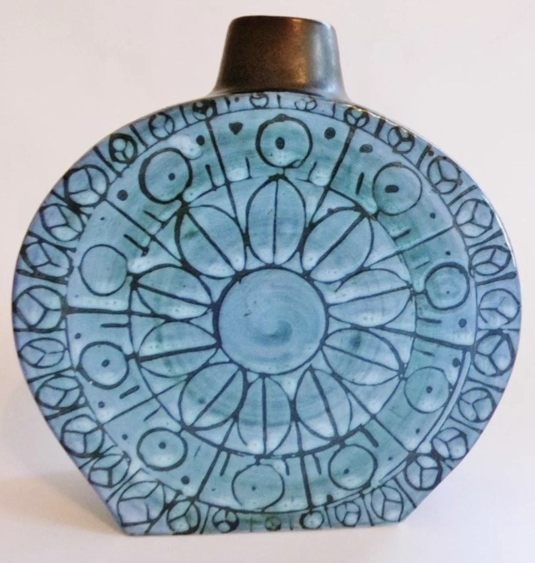 This is a superb early Troika large size flask, having the early trident mark. 16cm tall by 16 cm wide. In perfect condition with no chips, cracks or restoration. A lovely early piece from the renowned Troika studio.