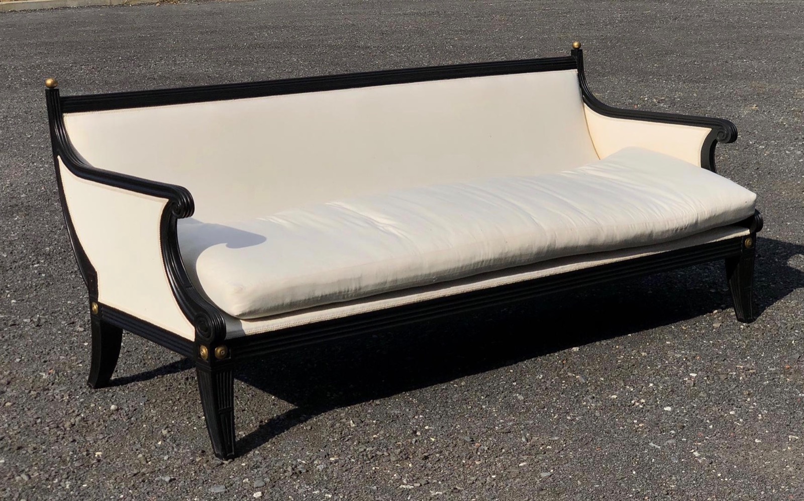 A superb Ebonised Sofa, Settee or Couch in the French Empire style. Very rare in this size and extremely comfortable!