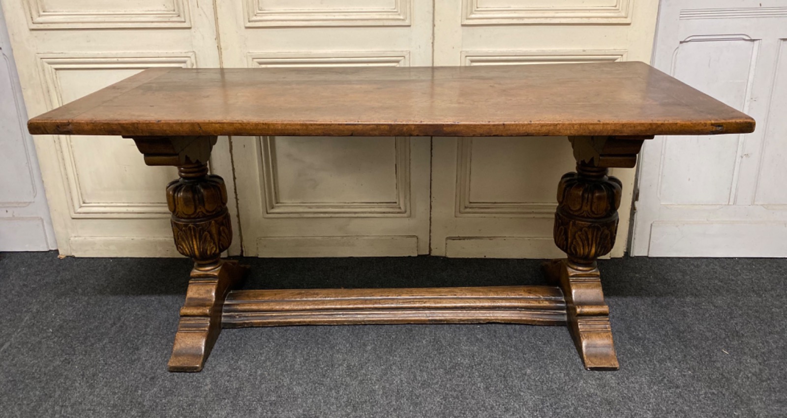 A lovely solid Oak Refectory or Kitchen Dining Table also referred to as Farmhouse Tables. Made from Solid English Oak in the 19th Century and having a lovely colour and patina. This table would very comfortably seat 6 and 8 when required.