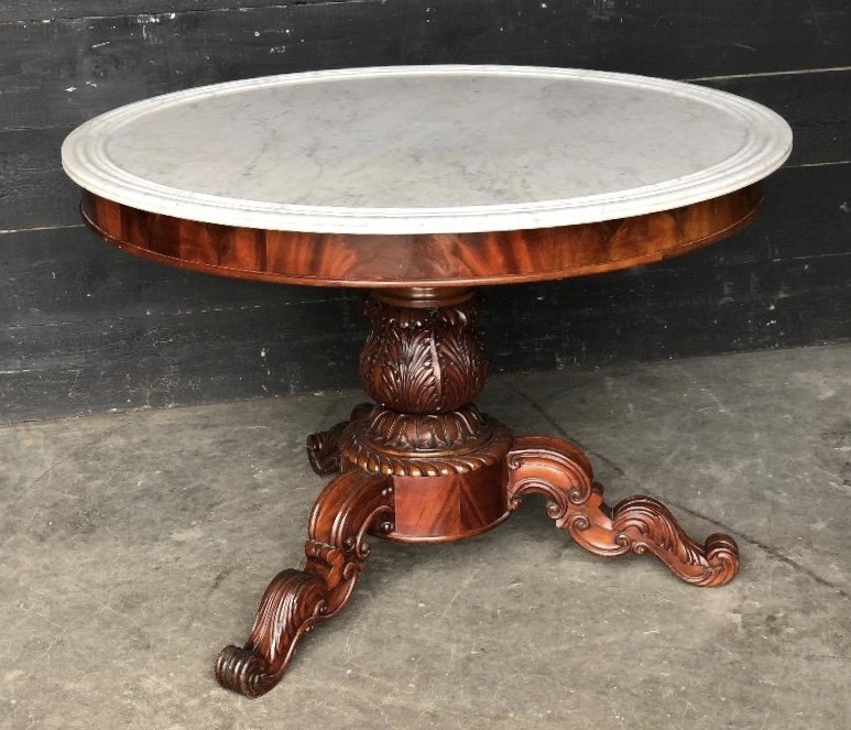 A very fine quality example of a French Gueridon or Centre Table. Made from Mahogany with original perfect marble top which has lovely pattern grooves towards the edge. Dating to the early 19th Century around the 1830’s.