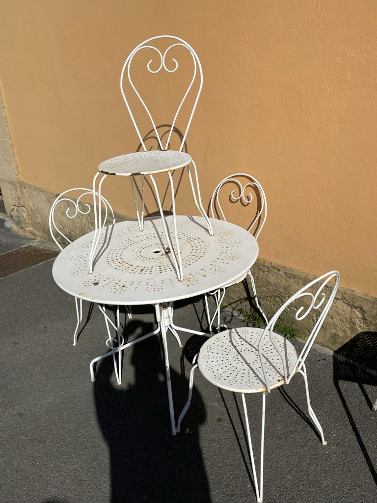 This is a lovely French antique 5 piece patio dining set dating to the early 1900s. In excellent original condition.