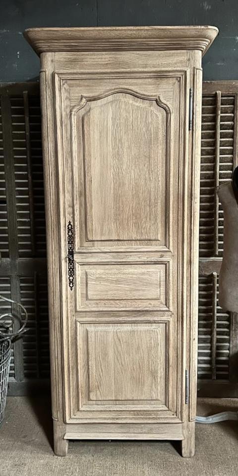 A lovely French 19th Century Single Door Oak Armoire, Wardrobe or Hall Cupboard. Dating to the 19th Century and having a single lockable (key present) door with 3 shelves inside. It could be converted to hanging with the simple addition of a rail.