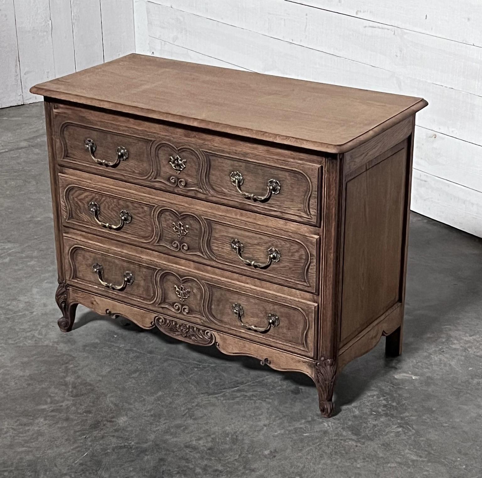 A stylish French Oak Chest of 3 Drawers. Made from Solid Oak and dating to around 1900, we have bleached it for a lighter look. All the drawers run smoothly fitted with original brass handles and in excellent original condition for the home.