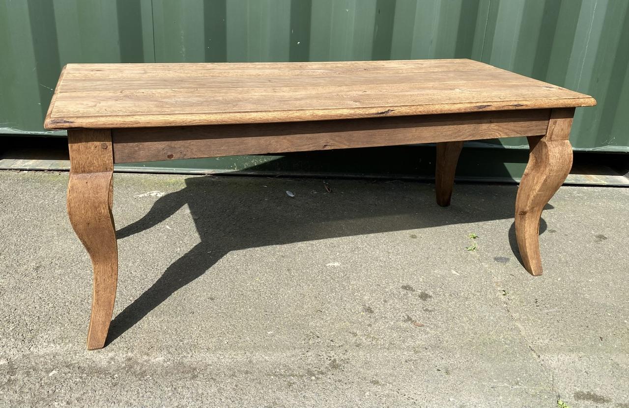 This is a delightful early 20th Century French antique solid oak coffee table having the French bandy legs, nice pegged construction and of good quality. We have bleached it for a lighter look and in excellent original condition for the home.
