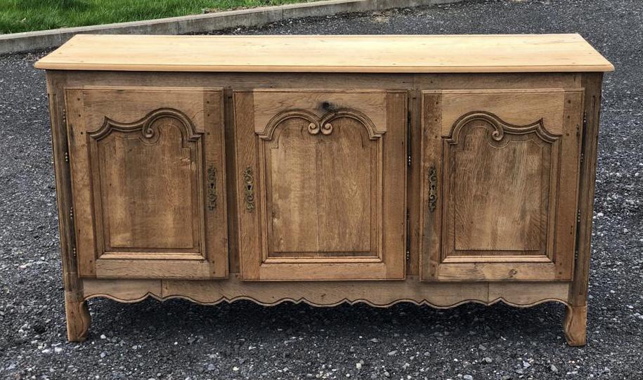 A lovely Farmhouse Bleached Oak French Enfilade or Dresser Base / Sideboard. Dating to the mid 19th Century. We have bleached this for a fresh look but could be coloured and waxed to any shade desired.