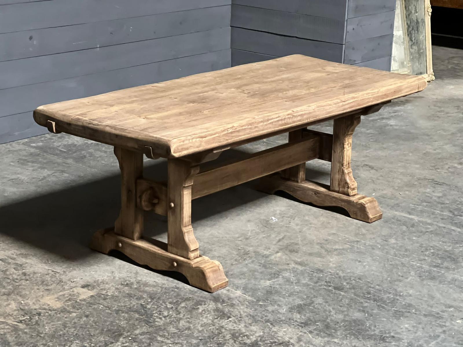 A very good quality oak refectory farmhouse dining table. Good solid construction dating to the early 1900s. We have bleached this to bring out the natural wood. It comes apart for easy access into the home.