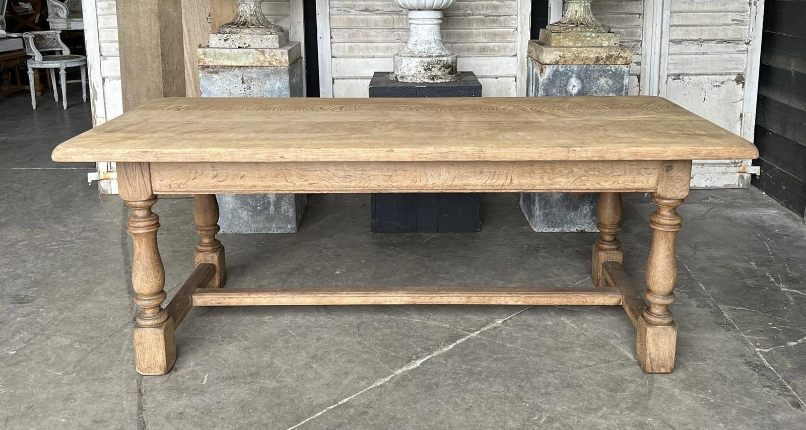 A good quality useful size Solid Oak Farmhouse Dining Table, would work well in a kitchen. French in origin and dating to the early 1900s, of very good quality construction this table will be around for generations to come. We have bleached it for a lighter look and in overall excellent original condition for the home.