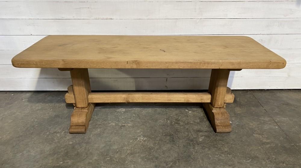 Excellent quality French solid oak farmhouse dining table with nice thick top. Good quality construction and dating to the early 1900s this table will be around for generations to come. We have bleached it for a lighter look.