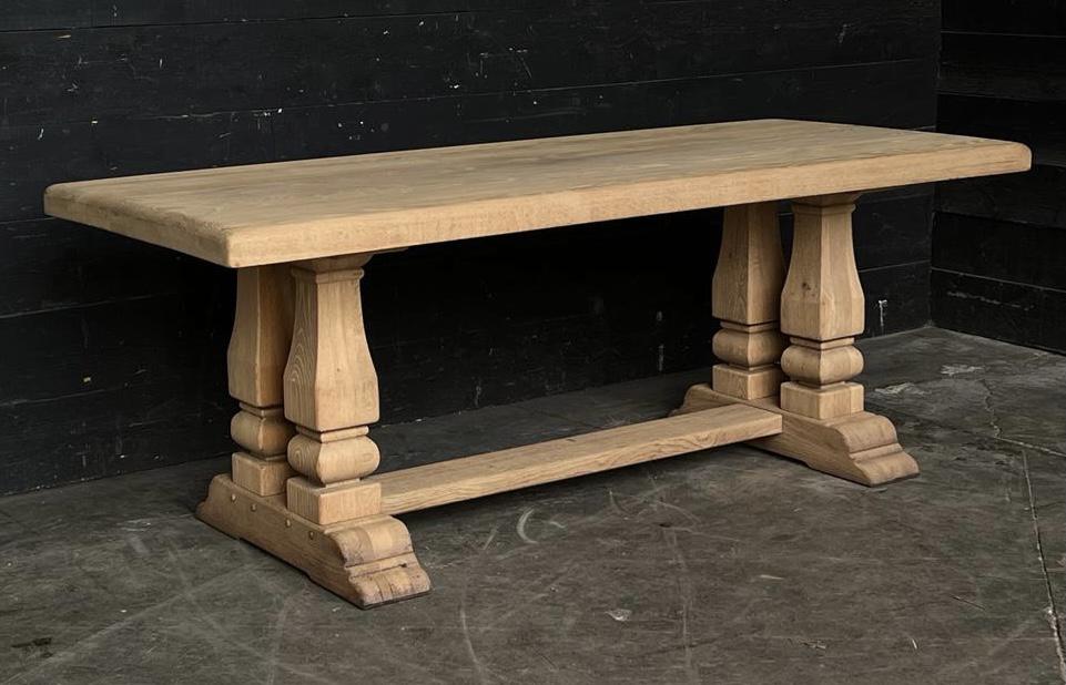 A nice looking French solid oak farmhouse dining table made in the early 1900s and of excellent quality construction this table will be around for generations to come. We have bleached it for a lighter look and to bring out the natural wood. It fully comes apart for easy access.