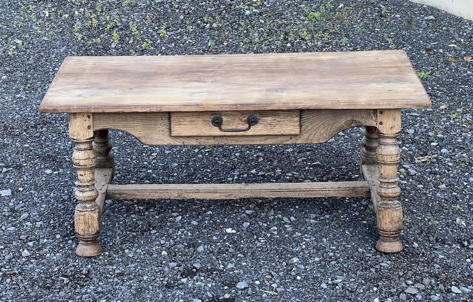 This is a nice looking French antique oak coffee table dating to the early 1900s. Having a single drawer to the front and a great rustic feel. We have bleached this to bring out the natural wood and in excellent original condition for the home.