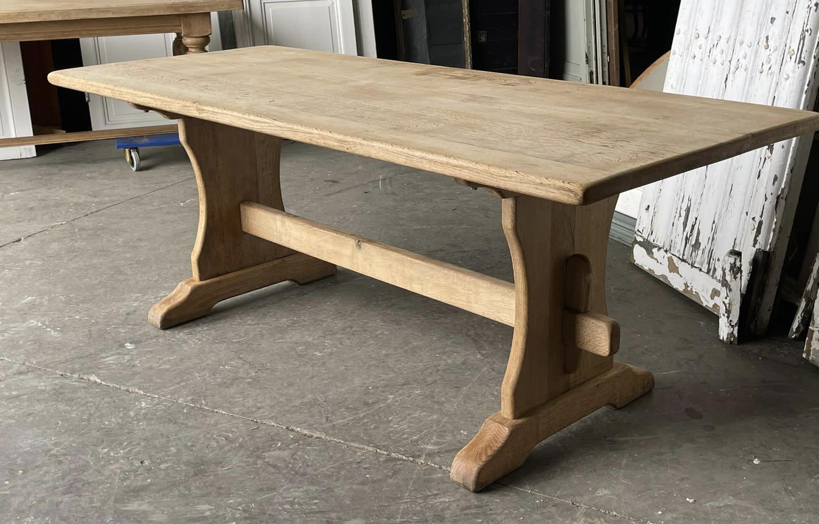 French Bleached Oak Trestle End Farmhouse Dining Table
