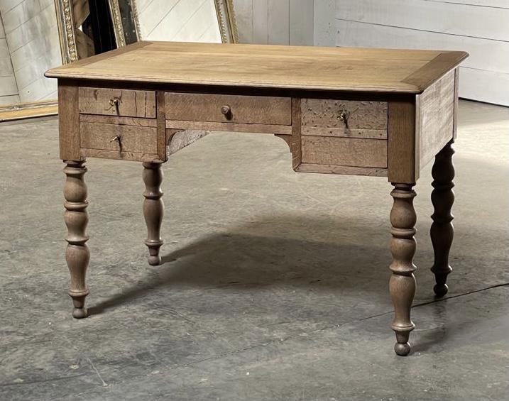 A delightful French bleached oak writing table or desk made from oak which we have bleached and brought out the natraj beauty of the wood. All the drawers run smoothly and the locks work (keys present). It dates to the later part of the 19th Century and in excellent original condition for the home.