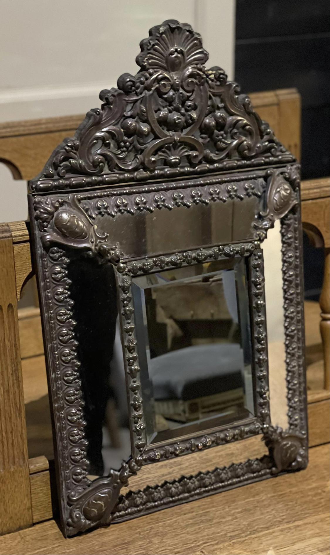 A highly decorative French Copper Cushion Mirror dating to the mid to late 19th Century. Original mirrors and would look stunning if cleaned or just high lighted.