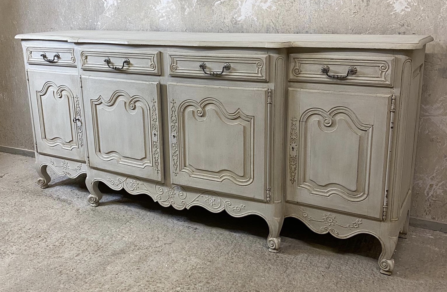 A very pretty French painted Enfilade or Sideboard, Dresser Base. Dating to the late 19th Century and made from Oak. All the drawers run smoothly, the cupboards are lockable (key present) and all the hardware is original.