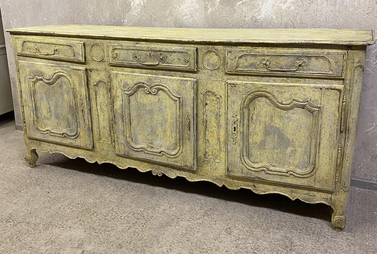 A superb early Oak French Sideboard, Buffet or Dresser Base. Would look super in a farmhouse style kitchen. Made from solid oak and very heavy ! The 3 drawers run smoothly and the 3 lockable (keys present) doors enclose a single shelf in each. Its an early piece dating to the mid 18th Century. This highly decorative piece is offered for sale in excellent original condition.