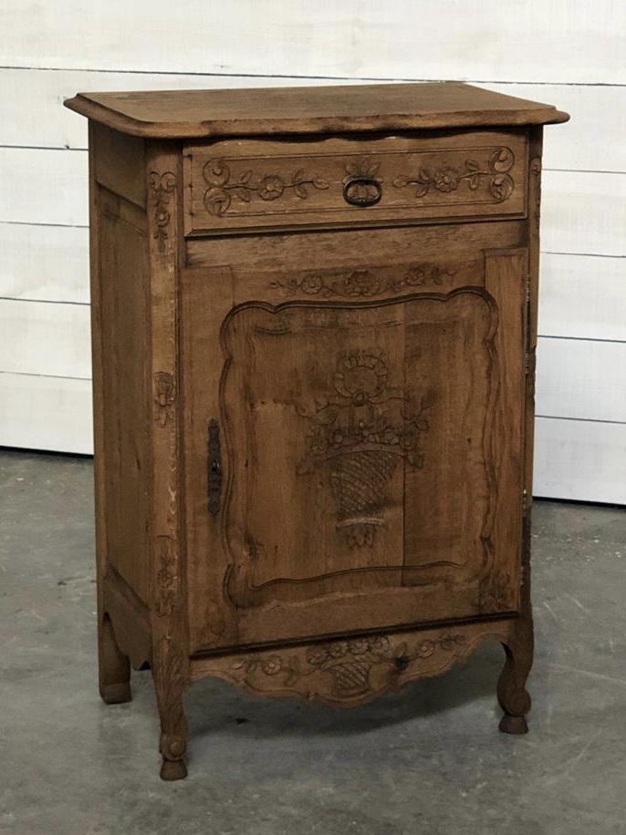 A delightful French Oak Country Cupboard or Cabinet dating to the early 19th Century. Having a single drawer to the top and cupboard under with single shelf inside. Love the carved decoration especially the basket on the door.