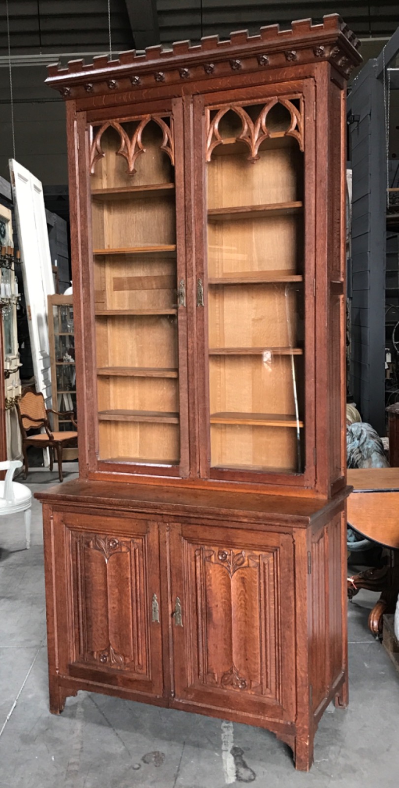 A rare Bookcase in the Gothic style, made if France from solid Oak and very high quality. The shelves inside are fully adjustable. Highly decorative and in excellent condition for the home.