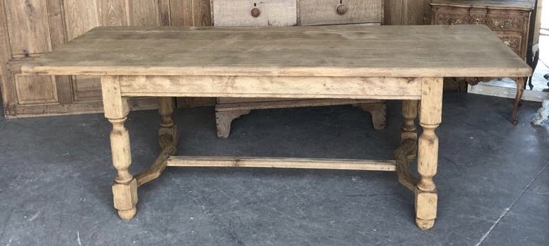 A nice solid antique oak French farmhouse refectory dining table, dating to the mid 19th Century. Good overhang at the ends for a chair under.