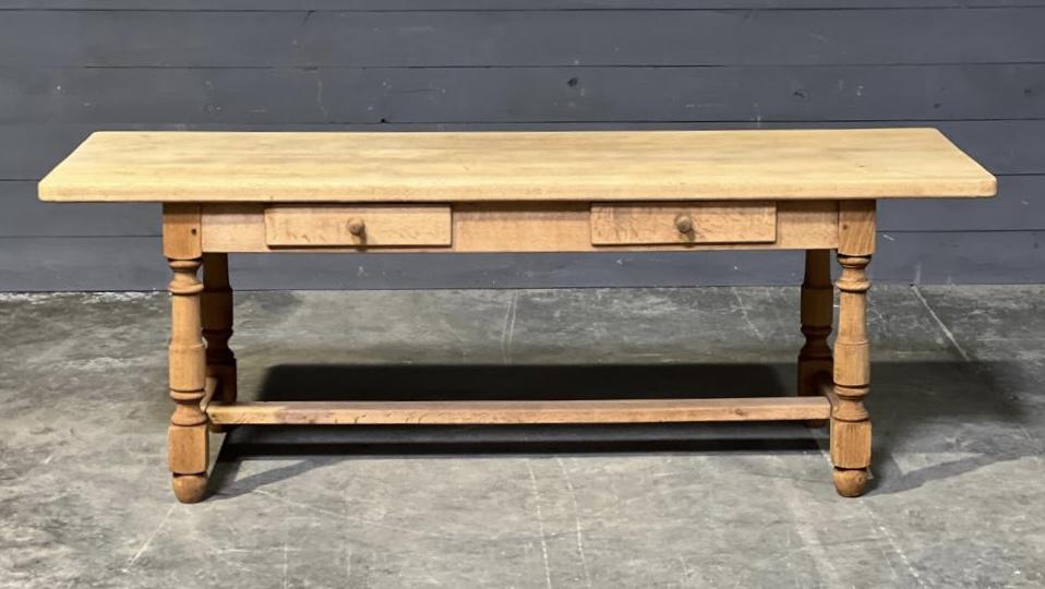 French Oak Farmhouse Kitchen Dining Table with 2 Drawers