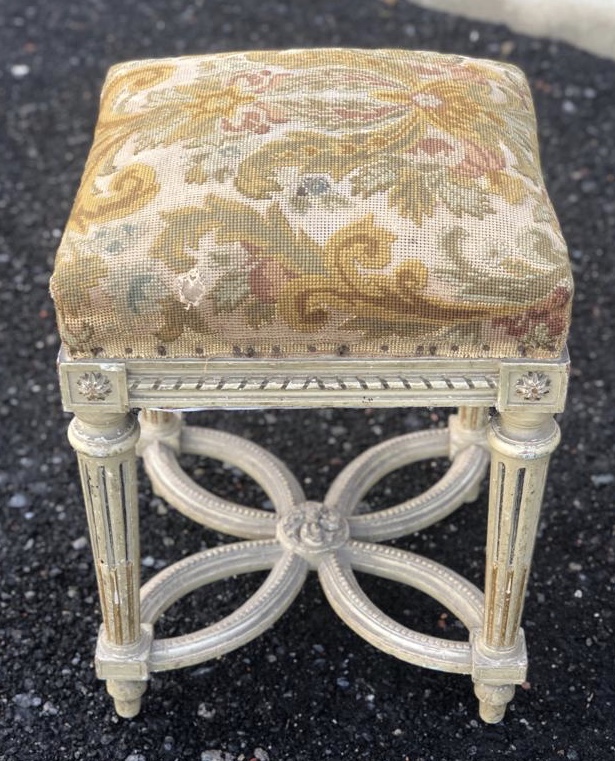 A very pretty French Stool, ideal for the bedroom as a dressing stool. Original decoration all over, the upholstery is in very good condition and comfortable. The frame is strong and sturdy.