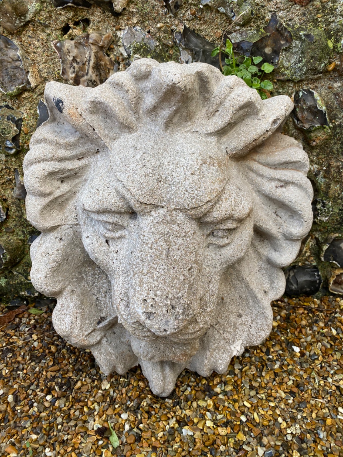 A nice Wall mask modelled as a lion, can be a fountain as drilled hole in the mouth.