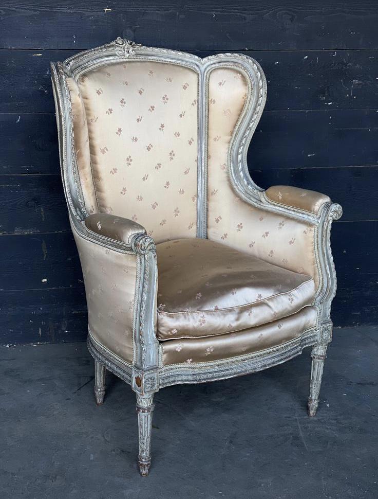 A very comfortable Upholstered French Bergere Arm Chairs of Generous proportions. The frame has its original paint finish nicely worn just how you would like it, the frame is strong and sturdy. The upholstery whilst in good condition I am sure you would want to reupholster if your fabric choice. The internal padding and seat are in very good condition.