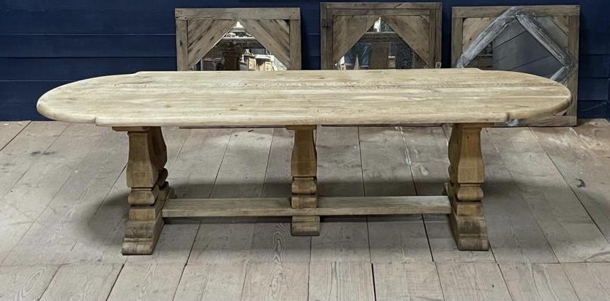 A wonderful Very Large French Solid Oak Monastery Refectory Dining Table. We have bleached this for a fresh look. Loads of character and a wonderful patina. The top comes off for easy access into the home.