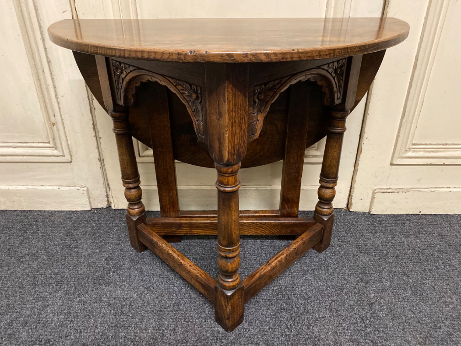 A lovely quality Lamp, Coffee or Side Table, made from solid Oak and dating to the early 20th Century. Half the top flaps up and the gated leg at the rear swings out.