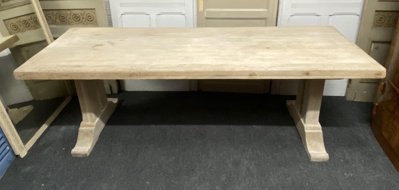 A super quality French bleached oak farmhouse dining table, made from solid oak which we have bleached and dating to the early 1900s. Of great quality construction this table will be around for generations to come.