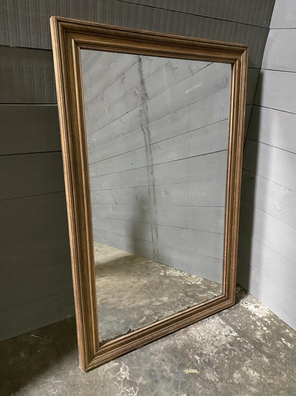 This is a great looking large size 19th Century French antique wall mirror. The frame made from oak and having its original back. The original mercury plate has some losses as per photos but is just how you would like it.