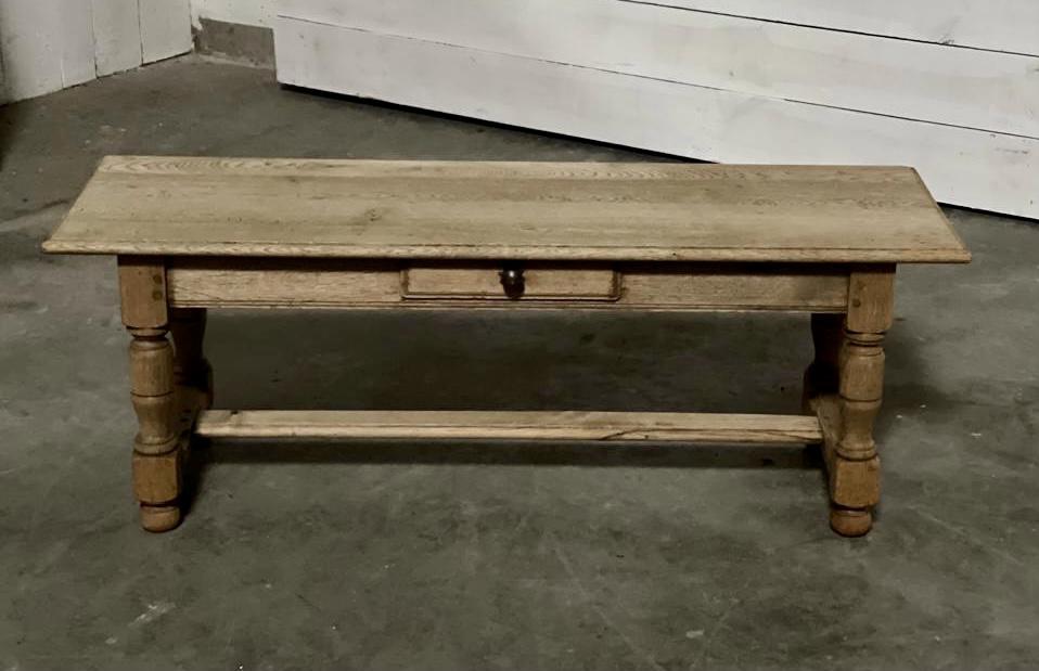 A great looking French bleached oak coffee table, larger than usual and having a great rustic look. A single drawer to one side.