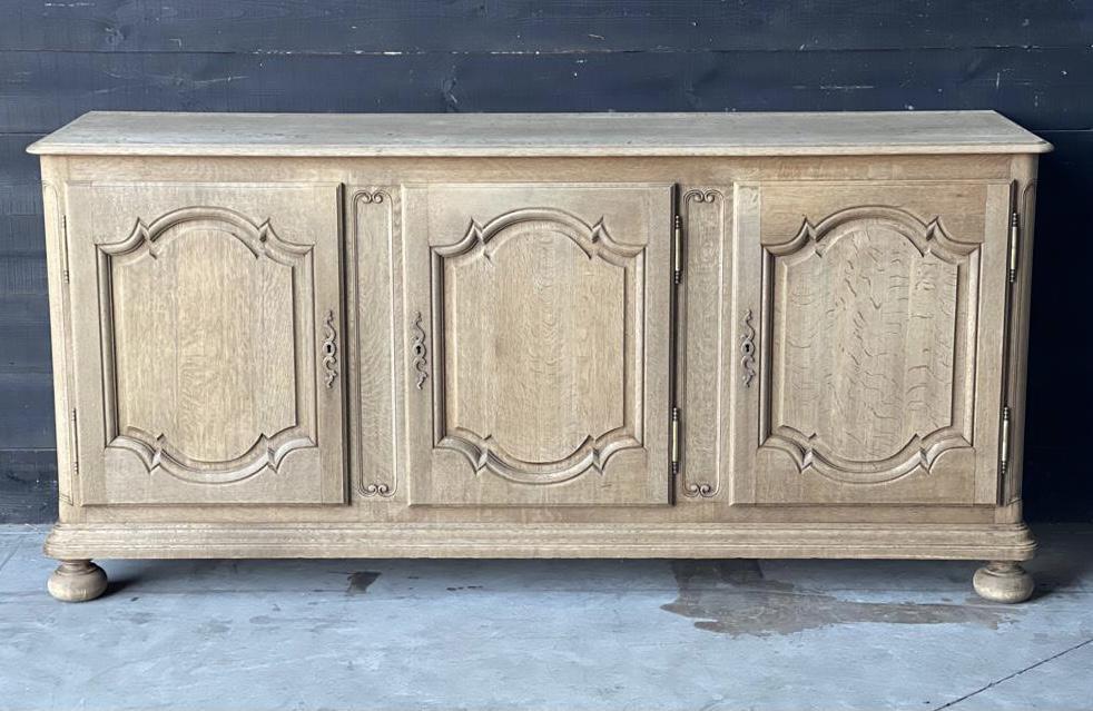A lovely large bleached oak French enfilade, sideboard or dresser base. Dating to the 19th Century and in excellent condition for the home. Locks work and keys present.