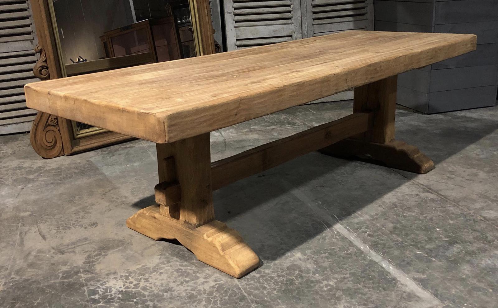 Large French Bleached Oak Trestle Farmhouse Dining Table